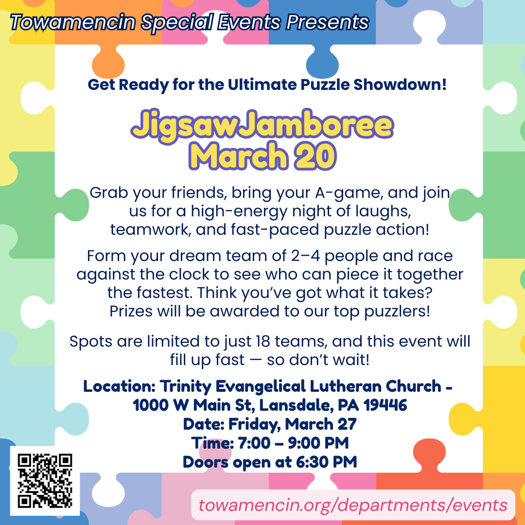 Katie Cleary 215-368-7602 ext. 1206 or events@towamencin.org