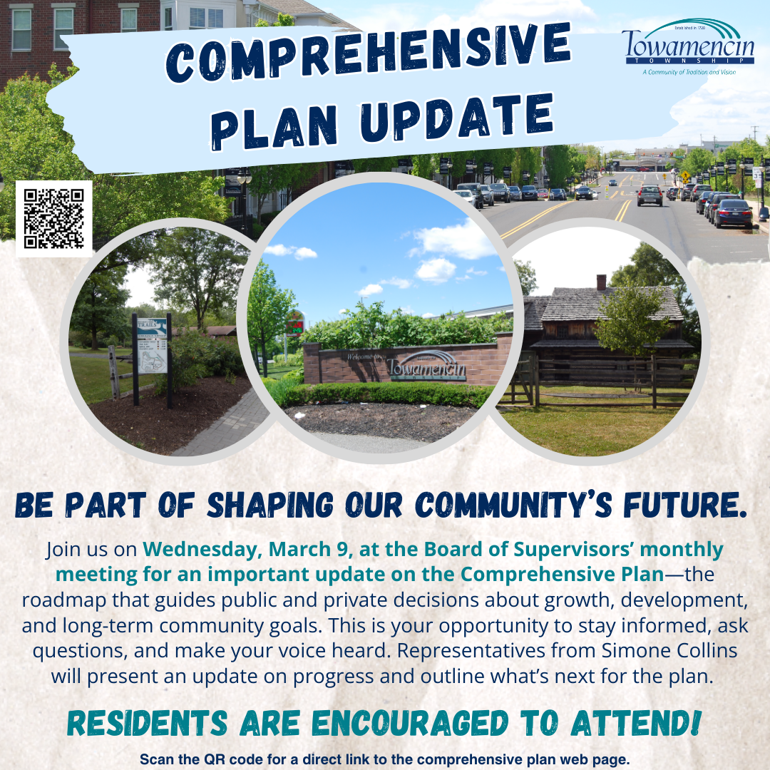 Meetings are open to the public, and residents are encouraged to attend. Meetings take place in the Meeting Hall Building of the Municipal Complex unless otherwise indicated. Meeting Hall address: 1090 Troxel Road, Lansdale. Additional parking is available at the adjacent Family Worship Center parking lot. If using the Church's lot, we ask that our guests park on the side closest to the Township property.