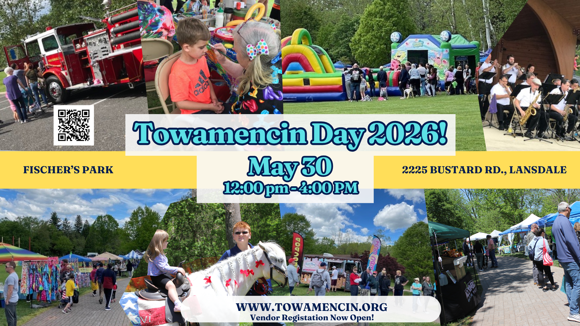 We're busy getting ready for Towamencin Day. Our annual free community event is back with a full day of activities, entertainment, vendors, a food court, and community groups. Bring the family, invite some friends, and enjoy everything the day has to offer! Vendor registration is open; vendor form. Volunteer today—click the appropriate group: Student or Adult. Visit our website for more information.