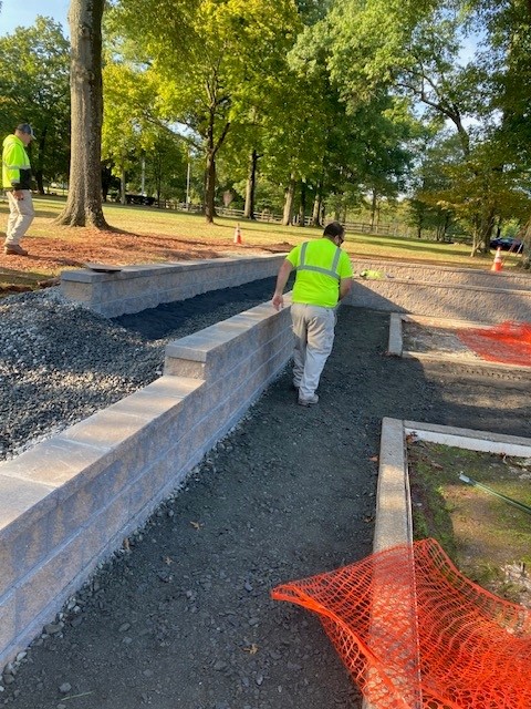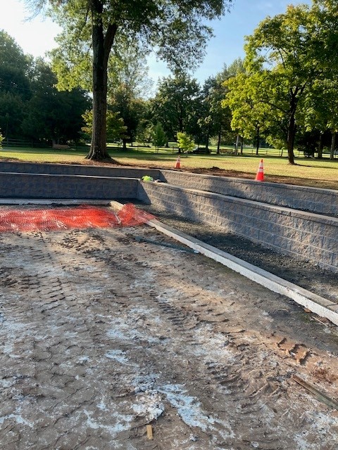 The project is coming along beautifully. This week our Public Works Department installed the retention wall and performed grading work. Next week, they will begin installing the paver walking paths and sidewalks around the courts. If you see them at the park, give them a thumb's up!