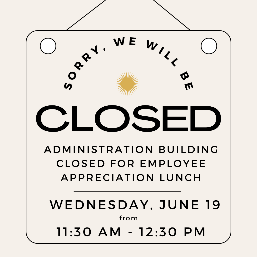 Administration Building Closed Wednesday, June 19 (11:30 am - 12:30 pm)
