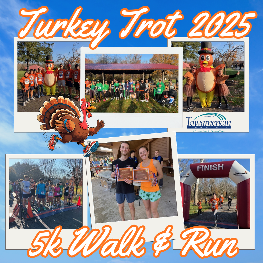 Our Annual Turkey Trot 5K Walk/Run, held on November 8, was a gobble of a good time! We shattered our participation record yet again, proving that this community can’t resist a great trot. A huge, heartfelt THANK YOU to everyone who makes this an exciting, successful event — our amazing sponsors and volunteers, hardworking Public Works crew, and every single enthusiastic participant who laced up and joined the fun. YOU are the reason Towamencin’s Special Events are so special. We couldn’t do it without you!