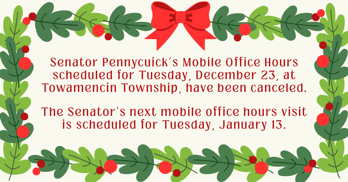 Senator Pennycuick Mobile Office Hours Canceled