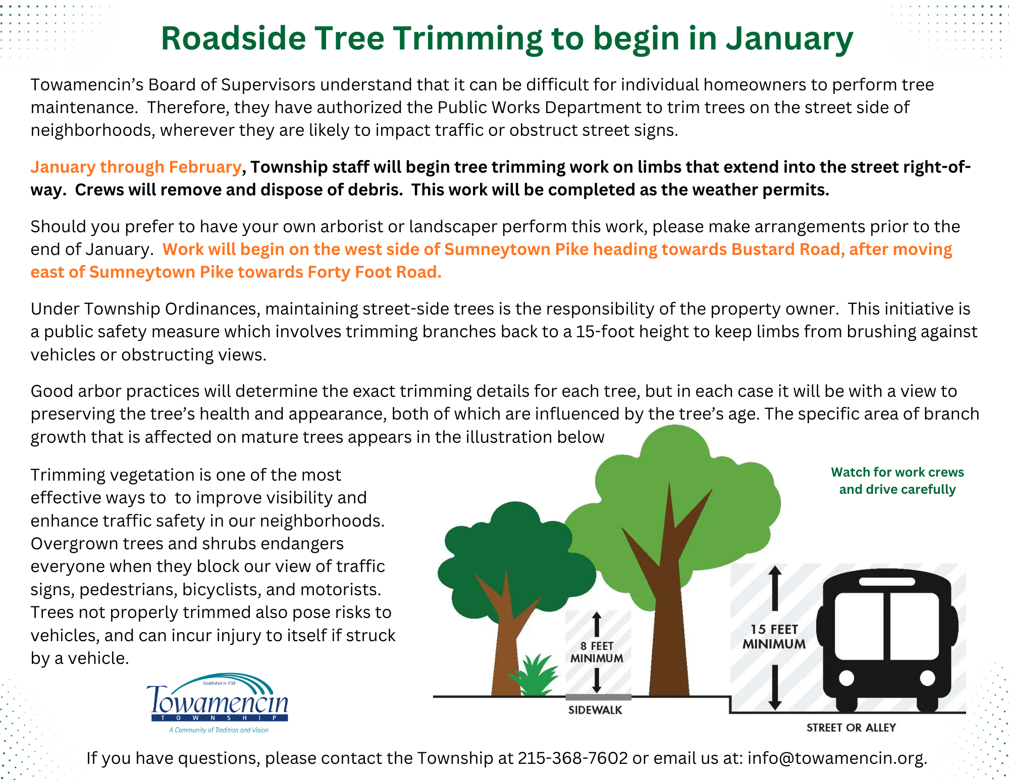 Roadside Tree Trimming to Begin Next Week