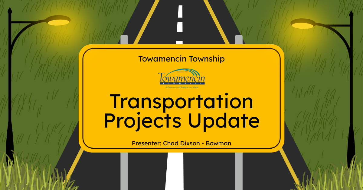 The Township’s Traffic Engineer, Chad Dixson, provided an update on various transportation projects to the Supervisors and residents, at the Board of Supervisors meeting Wednesday evening. If you missed it, check out the presentation here.