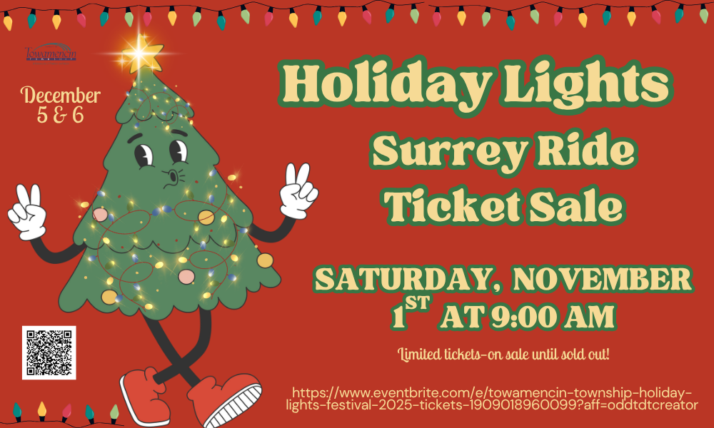 Preparations are underway for Towamencin’s annual winter wonderland of lights and holiday cheer. Enjoy the light display on foot or by surrey, take free photos with live reindeer and Santa, and savor a cup of hot chocolate and cookies. Event details can be found on our events page. Surrey ride ticket sales will be on Saturday, November 1, at 9:00 am.